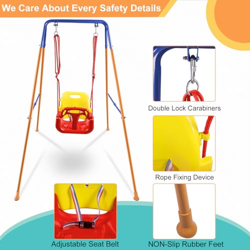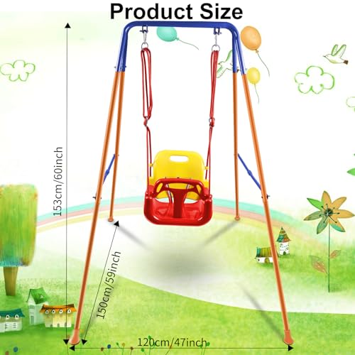 HLC 3 IN 1 Folding Baby Swing Outdoor Indoor Swing Toddler Swing Set for Garden with Support Back Baby Seat for Baby/Children’s Gift