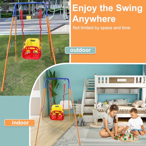 【Easy to use】This toddler swing has a foldable design for easy storage and transportation. The detailed instructions can help you complete the installation quickly. Your baby can play this baby swing in your backyard, indoors, playground.