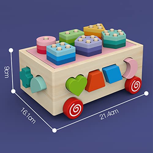 Wooden montessori Toys: Our wooden stacking toys are designed in the shape of a cart with wheels, which can store all the wooden blocks inside, so that children can happily manipulate the cart on the floor after sorting and strengthening their motor skills.