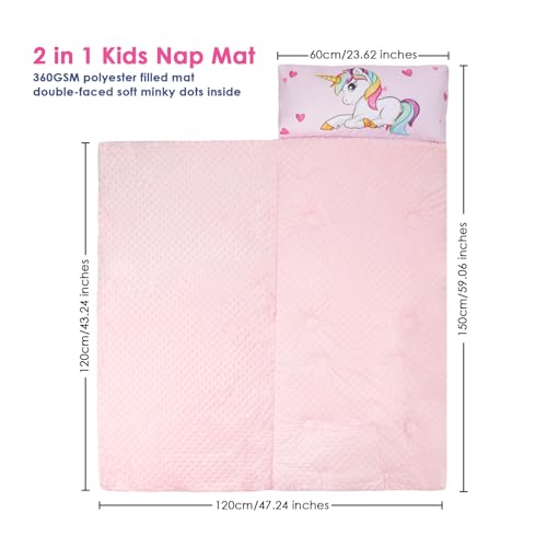 High-quality Material&Thicker Mat: Our toddler slumber bag is made of high-quality polyster and the interior is made of soft minky dots on both sides, which can bring a warm and relaxed experience to your children during the nap time.And the mat is filled with 360gsm polyester, making it cosier and softer than other nap mat.