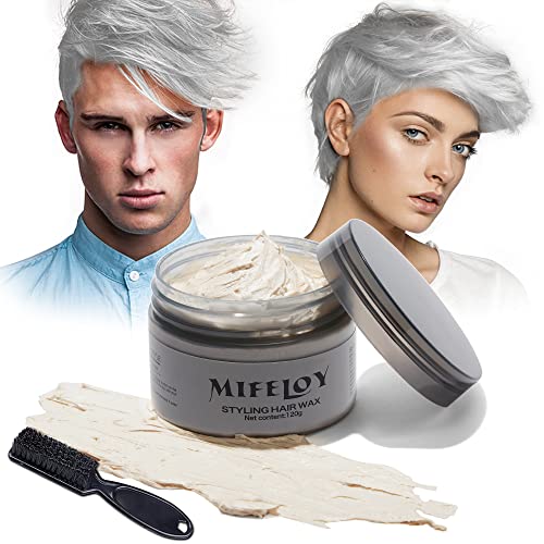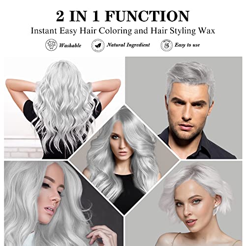 120g Temporary Silver White Hair Color Wax with Dye Brush, Instant Natural Hairstyle Cream, Disposable Coloring Mud for Men Women, Washable Styling Pomades for Party Cosplay DIY Halloween
