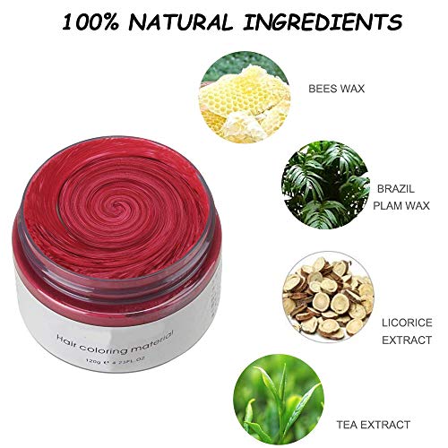 Temporary Hair Wax Colour, OCHILIMA Red Hair Wax Hair Style Dye Mud, Natural Ingredients Washable Hair Styling Cream for Men Women Coloring Wax 120g /4.23 Oz