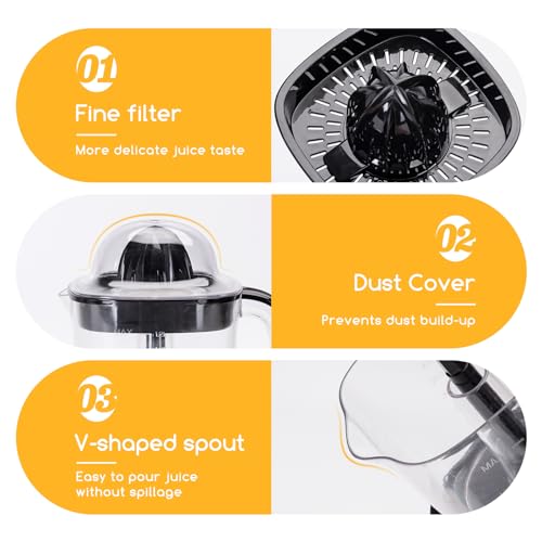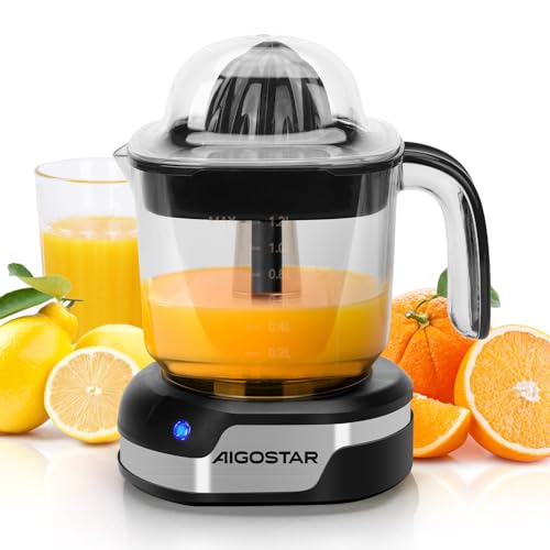 Aigostar 1.2L Orange Juicer Electric Citrus Juicer with LED Working Lamp, 2 Citrus Cones, Two Way Rotation, Filter, Lemon Squeezer Press for Orange Lemon Lime Grapefruit, Black – Juicy 30G4F