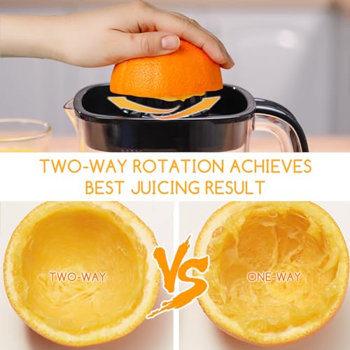 【TWO WAY ROTATION】 Press the cone reamer to start the device and release for pause. Two way rotation juicing performs a high juicing rate and remains less pulp. Filtered design to separate the pulp from the juice for a smooth taste.