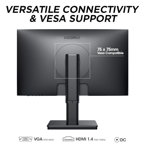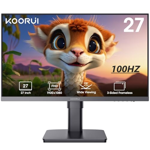 KOORUI 27 Inch FHD Monitor, IPS Computer Monitors, 100Hz, 4ms, 16:9 Full HD (1920 x 1080), Ultrathin Bezel, VESA Mountable, HDMI/VGA, Low Blue Light, Black