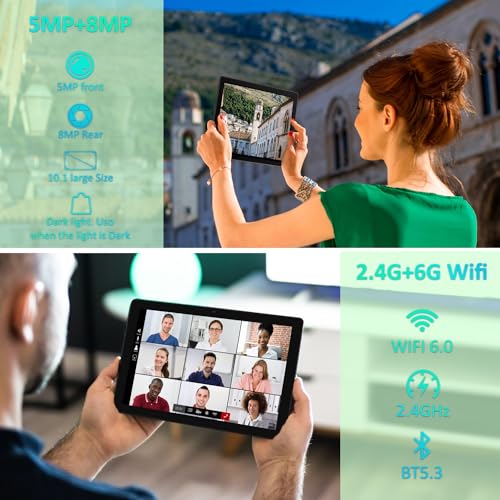 【Dual Camera and Dual Speakers】 Excellent 8MP rear camera + 5MP front camera, which is convenient to record daily life and video calls/record; dual speakers, providing a robust audio experience for your favorite music, videos, and games; 5000mAh large-capacity battery and intelligent power saving tech make you don’t worry about tablet insufficient power.