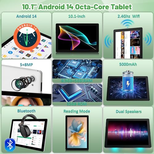 【8GB+32GB+1TB Expandable】 The 2024 latest tablet comes with Android 14, 8GB (3+5) RAM that ensures fast and smooth operation. And 32GB of storage, expandable up to 1TB via TF card to store all the files you need and your favorite apps. Perfect for working, reading, studying and entertainment.